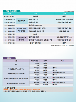 스마트헬스표준포럼, 스마트의료보안포럼에서 "헬스케어 혁신 기술교육(헬스케어AI, 블록체인 이론과 실습)"을 진행합니다.